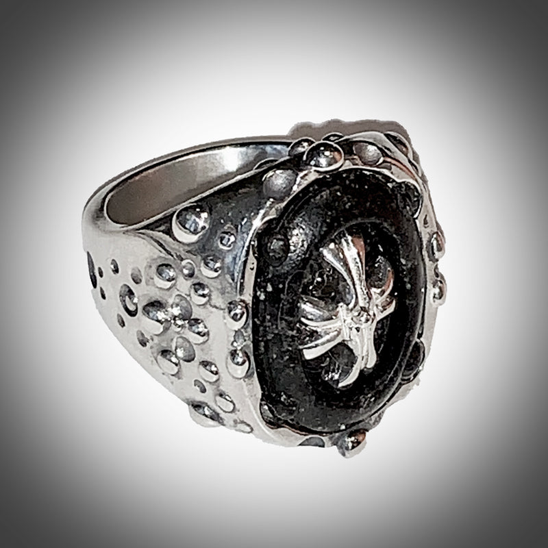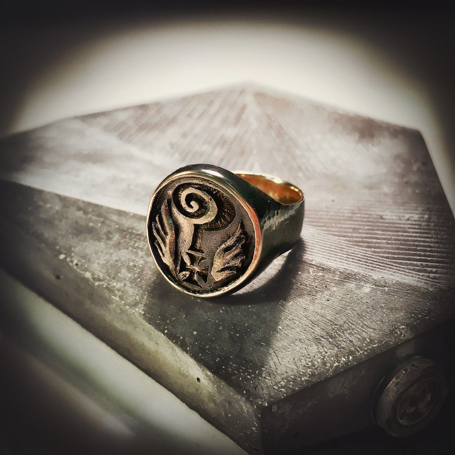 A striking signet ring, custom-made for a motorcyclist whose Harley was rebuilt by Indian Larry. Handcrafted with traditional techniques, it fuses masculine strength with personal symbolism. A bespoke piece that transforms passion for machines and freedom into a wearable statement.