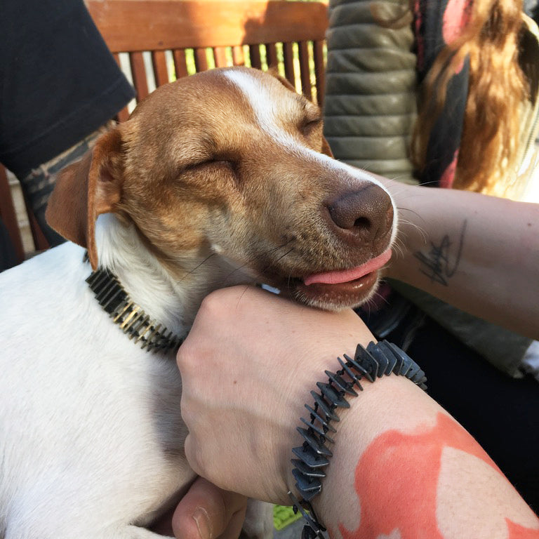 An extraordinary bespoke commission: a bracelet and a matching dog collar, created for a client and her canine companion. Handcrafted with care, both pieces reflect the deep bond between human and animal, transforming it into wearable symbols of unity and style.