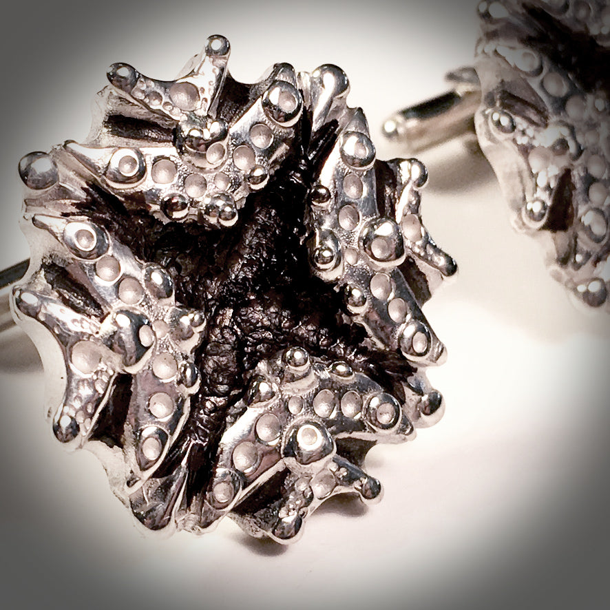 Baroque-style cufflinks in silver, richly adorned with ornamental detail and handcrafted with traditional techniques. This bespoke creation merges historic design language with contemporary expression, turning the cufflinks into small wearable works of art. A unique piece that translates elegance and opulence into the present.