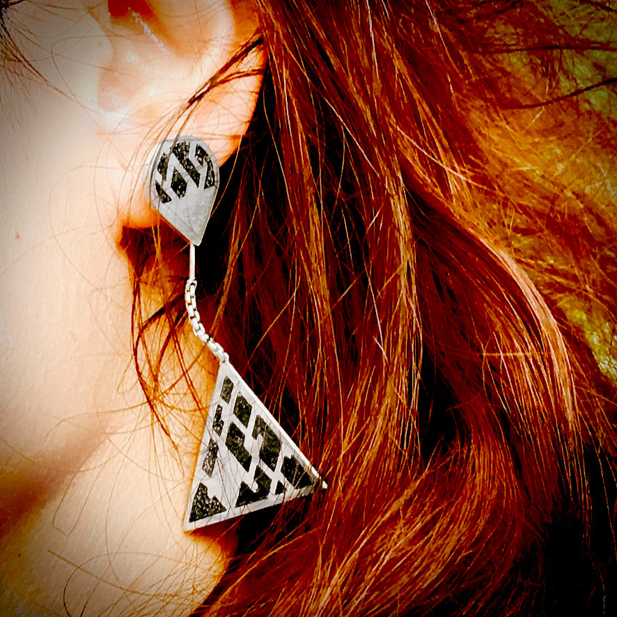 Earrings shaped as pyramids, their structure inspired by the bracing of traditional timber frameworks. Handcrafted as bespoke creations, they unite architectural clarity with delicate lightness. An exceptional jewel that transforms construction into elegance.