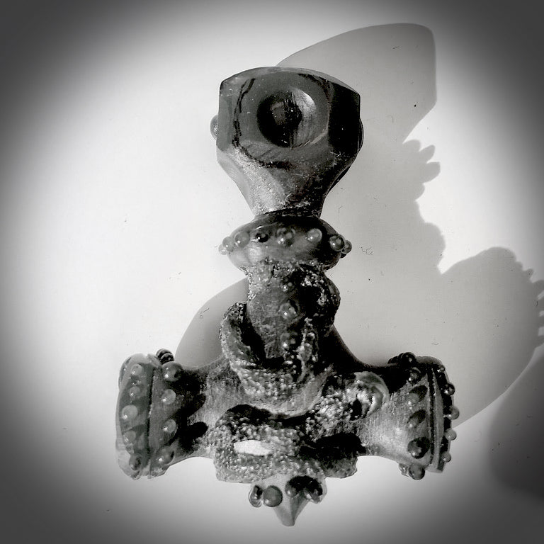 A heavy three-dimensional pendant shaped as Thor’s Hammer, artfully entwined with a serpent. Handcrafted as a bespoke piece in solid form, it embodies the symbolism of Norse mythology. A powerful jewel that strikingly represents strength and protection.