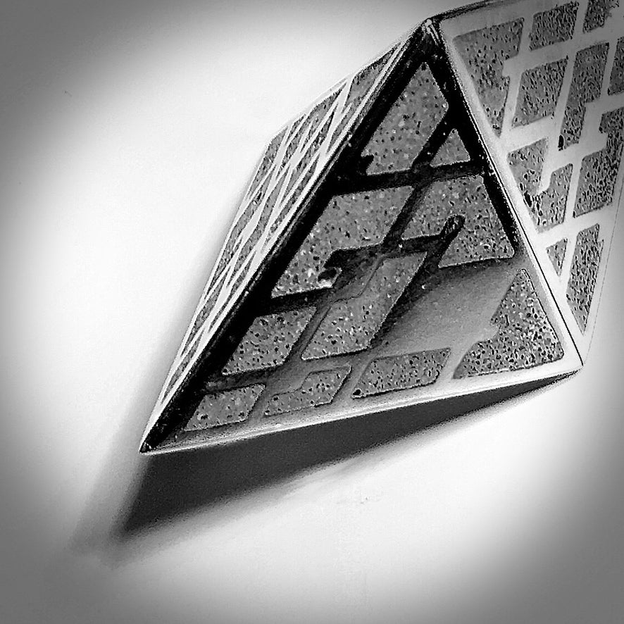 An extraordinary pendant in the shape of a double pyramid, crafted from gold and a specially developed concrete. Handcrafted as a bespoke creation, it merges noble materials with innovative experimentation. A unique piece that fuses architecture, design, and jewelry into a powerful symbol.