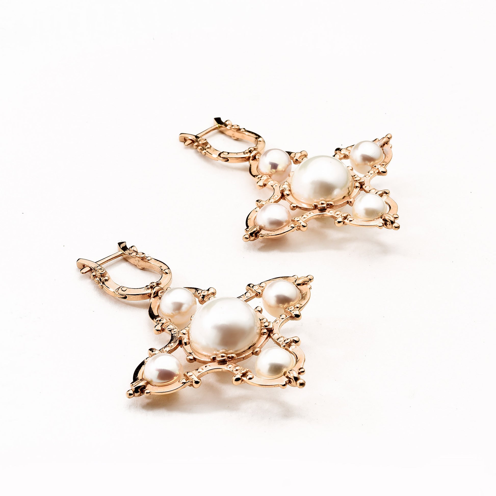 Special feature: Large Venetian cross-shaped earrings with exceptional South Sea pearls in a baroque design