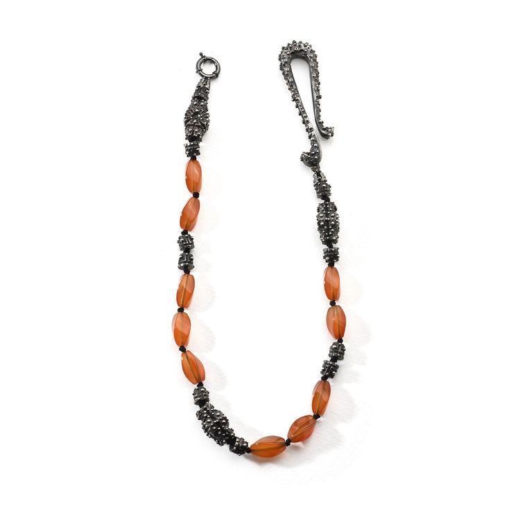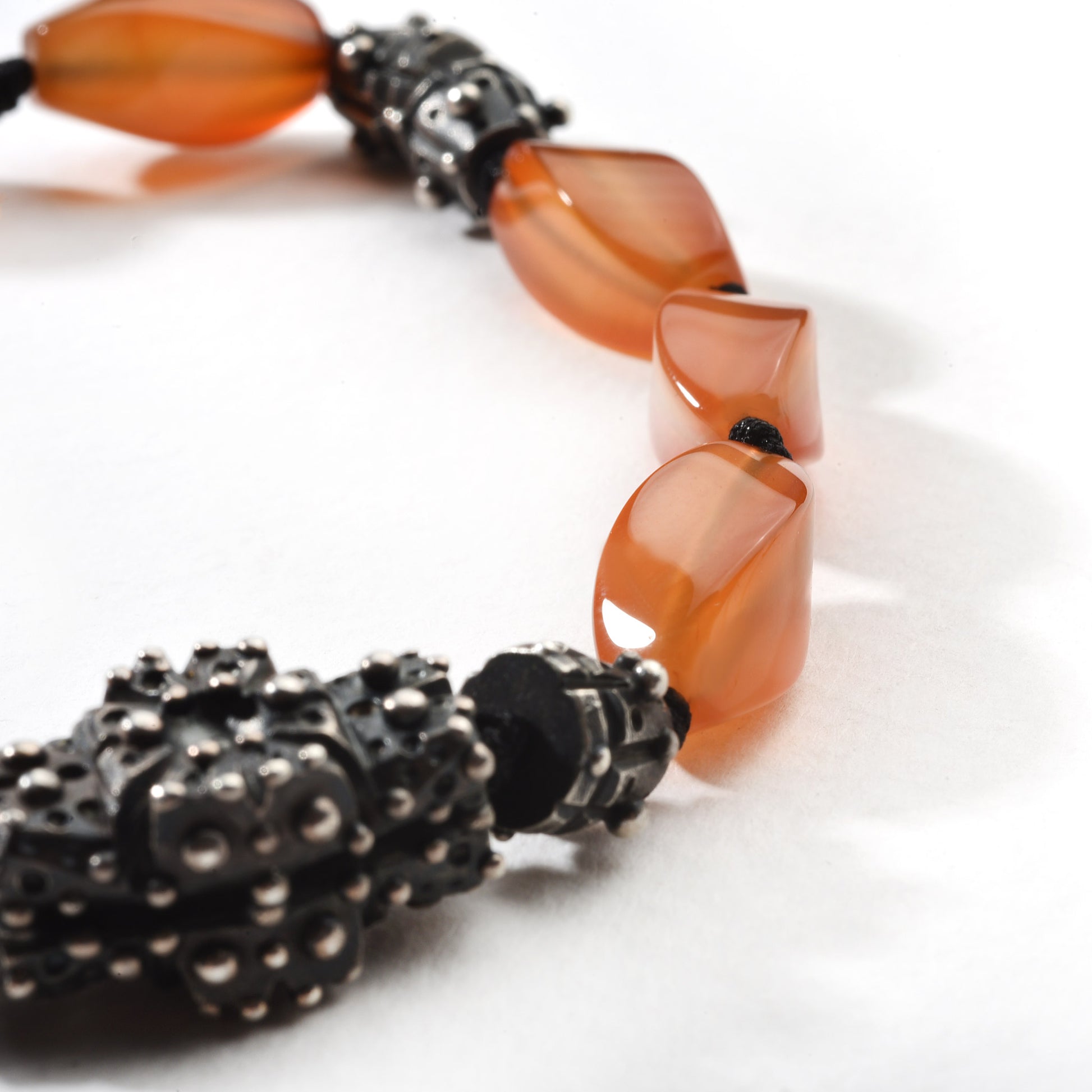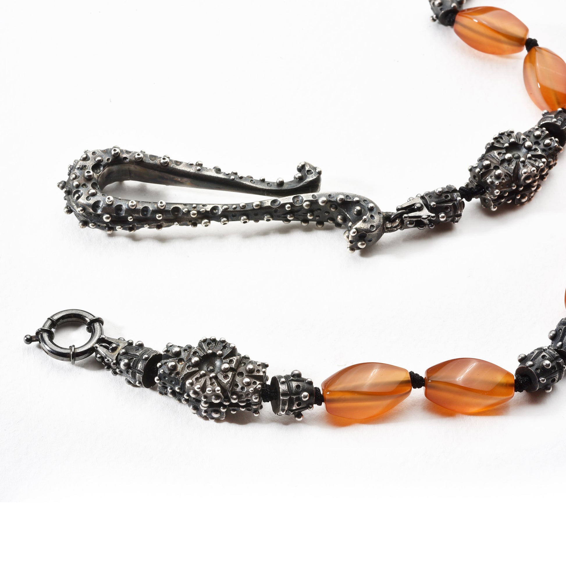 - Material: 925 Sterling silver (blackened) with carnelians in fancy cut
