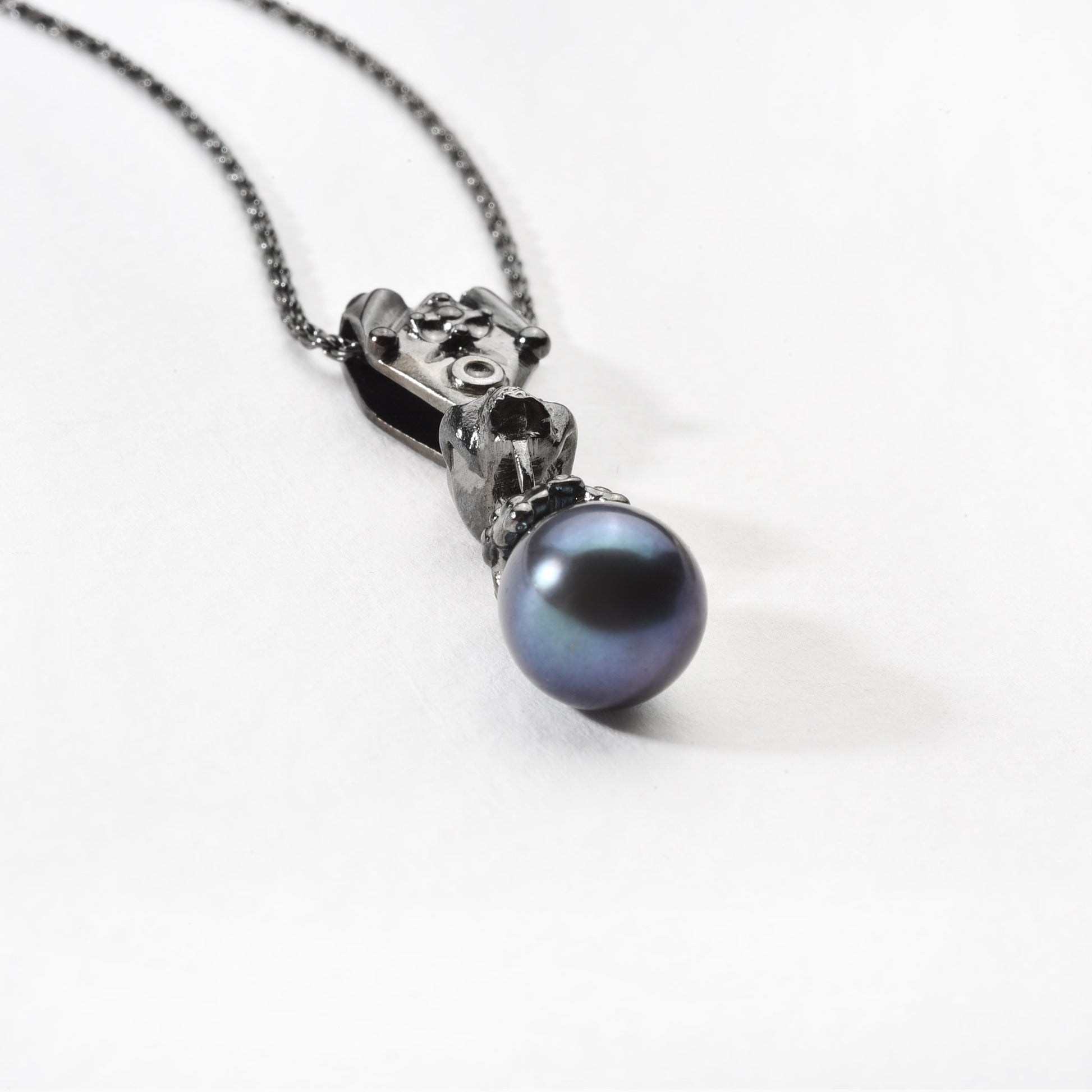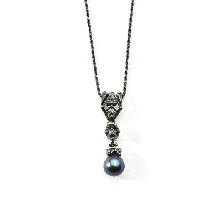 - Material: 925 sterling silver (black rhodium-plated), 14k yellow gold (ORAZIA), black drop-shaped pearls