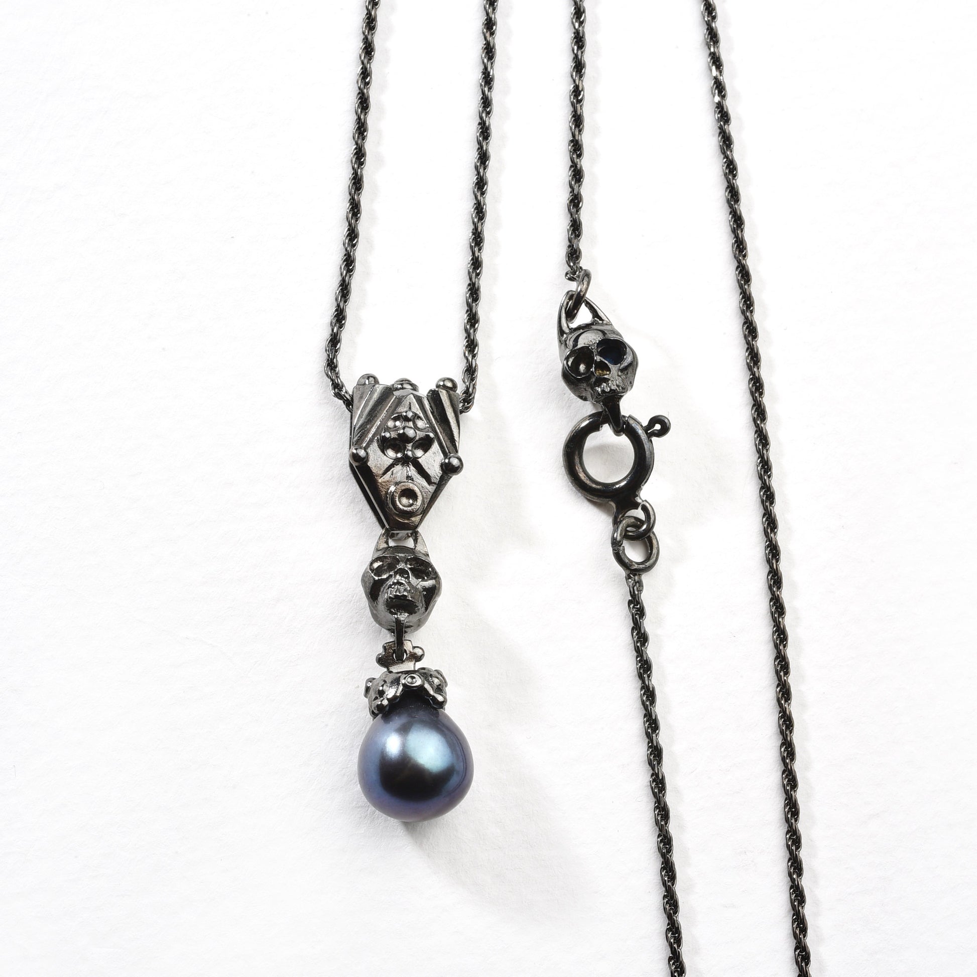 - Motifs: Skull elements with pearl accents