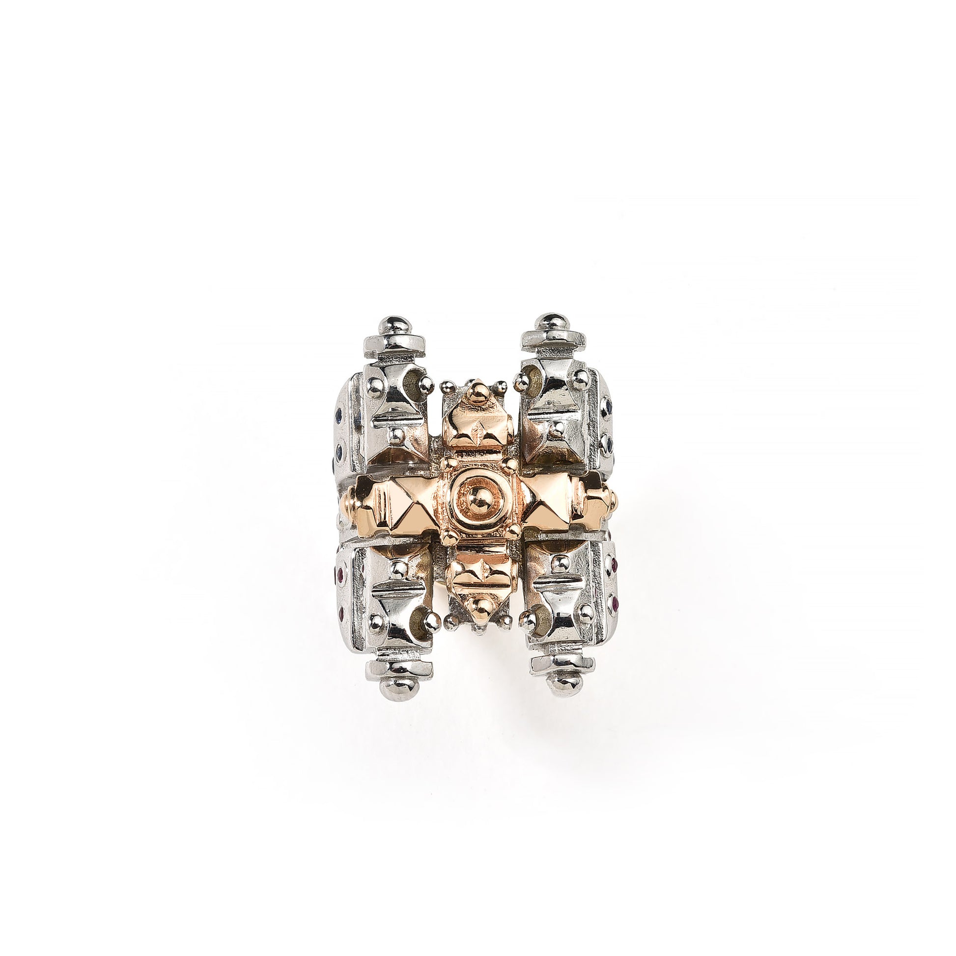 A bold and symbolic pairing from our Vanitas Collection: the SACRATI cross pendant and the OTTAVIO ring combine sacred geometry, rich materiality, and baroque grandeur.