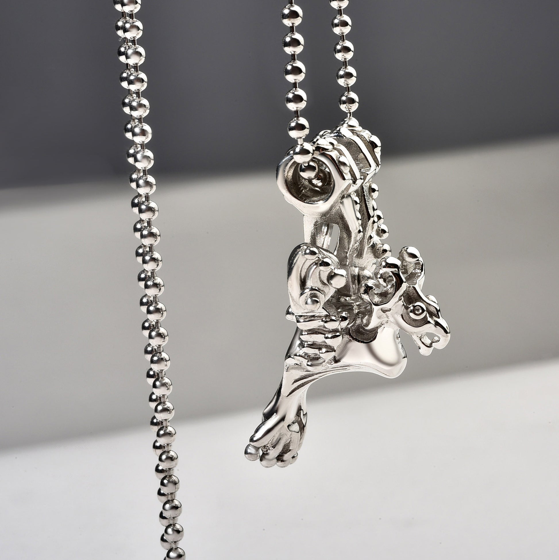 The SIGNAC pendant becomes a powerful talisman, with its rhodium finish ensuring long-lasting shine and comfortable wear.