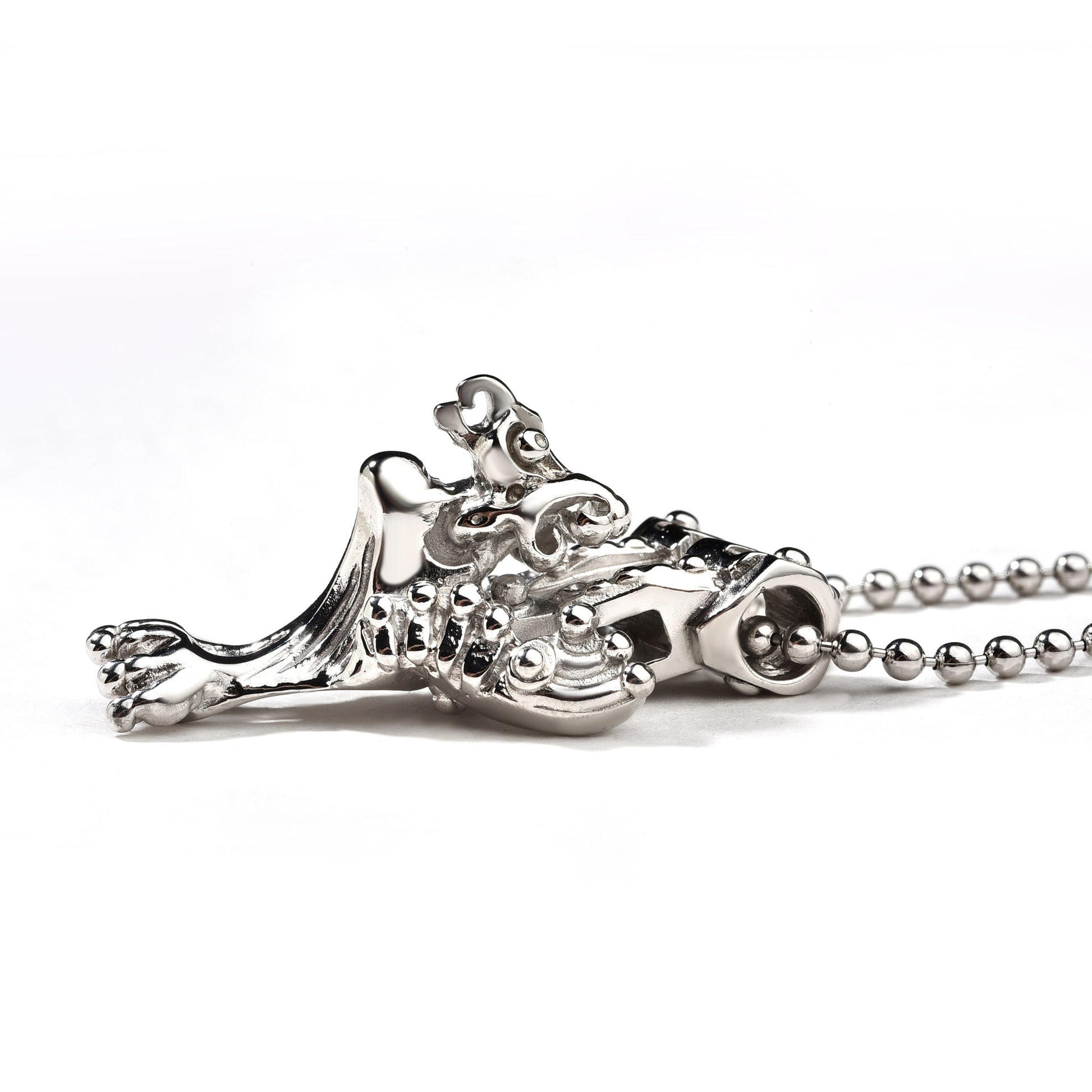 Handcrafted pendant in dragon shape. The detailed craftsmanship showcases the baroque influences of our collection. The rhodium plating ensures long-lasting shine and wearing comfort.